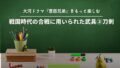 鎧は、合戦の際に敵の攻撃から身を守るための防具です。すでに弥生時代から、木や竹、革製の簡易的な鎧が作られていたことがわかっています。